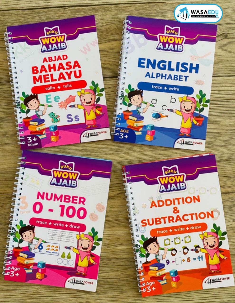 WOW AJAIB ialah siri buku aktiviti pendidikan yang direka khas untuk membantu anak kecil belajar menulis, membaca dan mengira dengan cara yang menyeronokkan.