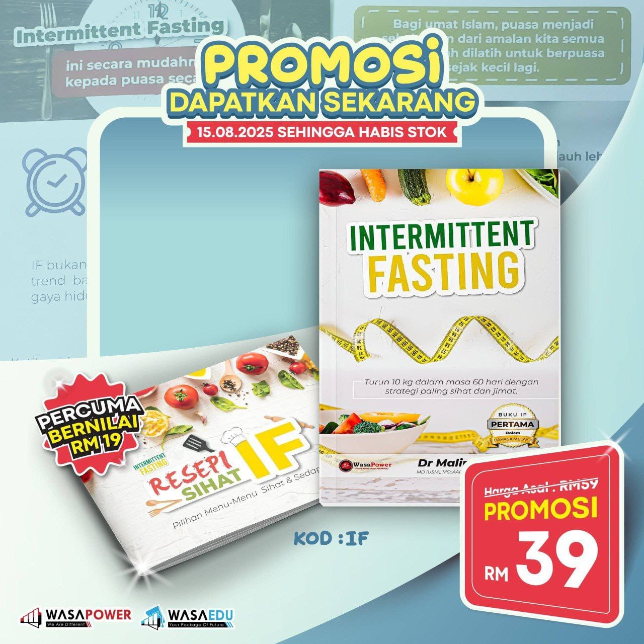Buku Intermittent Fasting ini disusun khas untuk bantu anda faham konsep IF dengan cara yang ringkas, praktikal dan mudah diikuti.