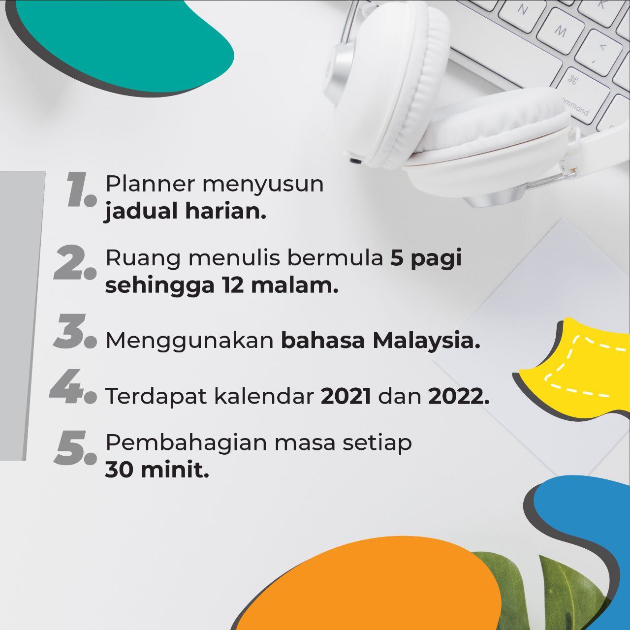 Dengan susun atur yang kemas dan jelas, setiap hari boleh dirancang dengan lebih fokus tanpa rasa serabut.